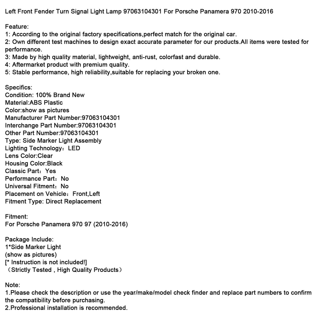 Lewy przedni kierunkowskaz 97063104301 do Porsche Panamera 970 2010-2016