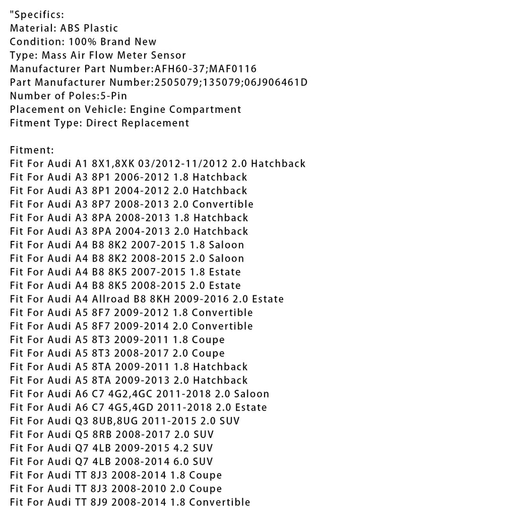Pasuje do Audi A3 8PA 2004-2013 2.0 Hatchback