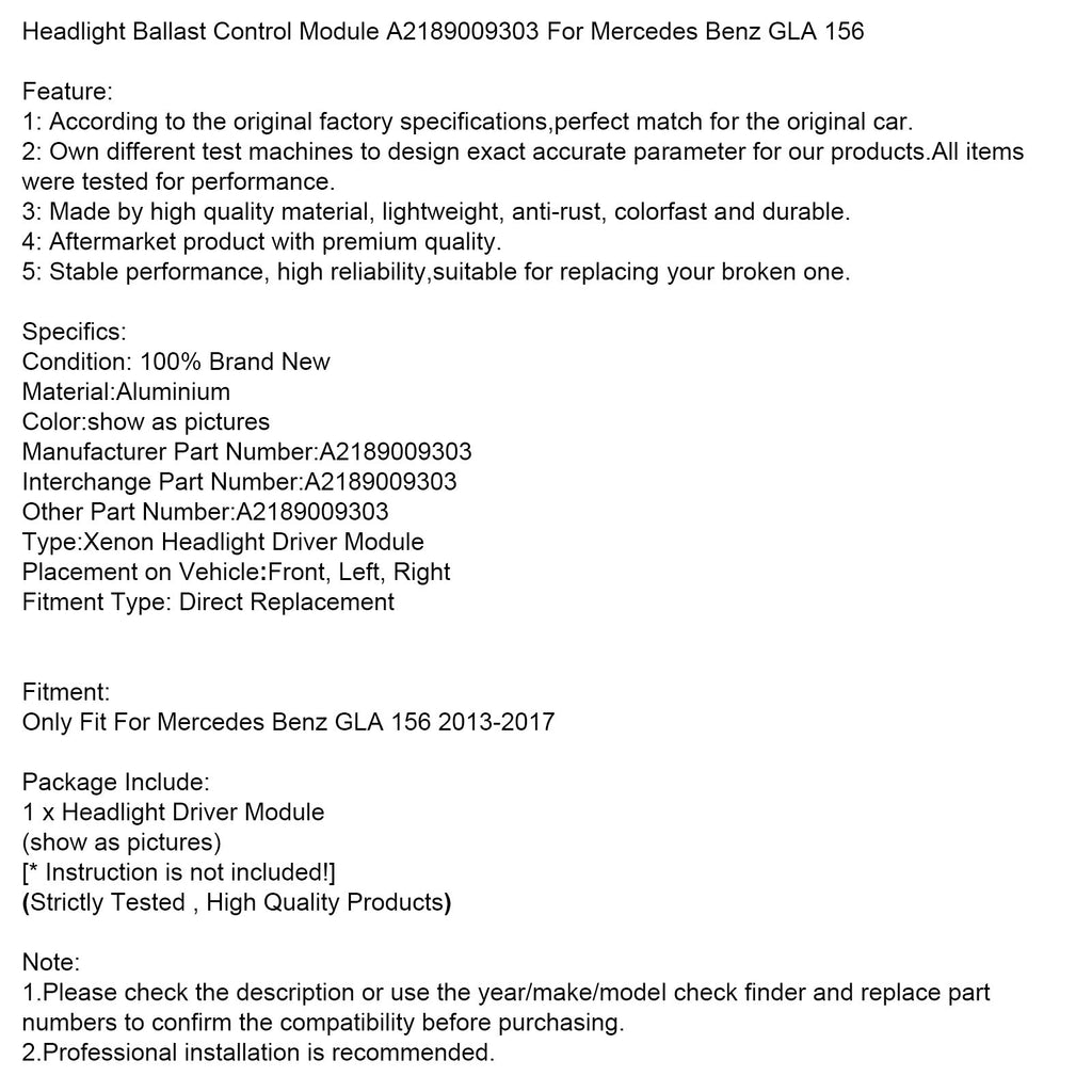 Moduł sterujący przetwornicą reflektorów A2189009303 kompatybilny z Mercedes-Benz GLA 156