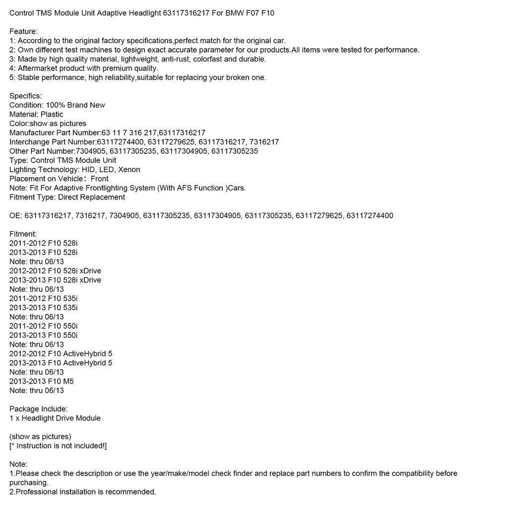Moduł sterujący reflektorów adaptacyjnych TMS 63117316217 dla BMW F07 F10