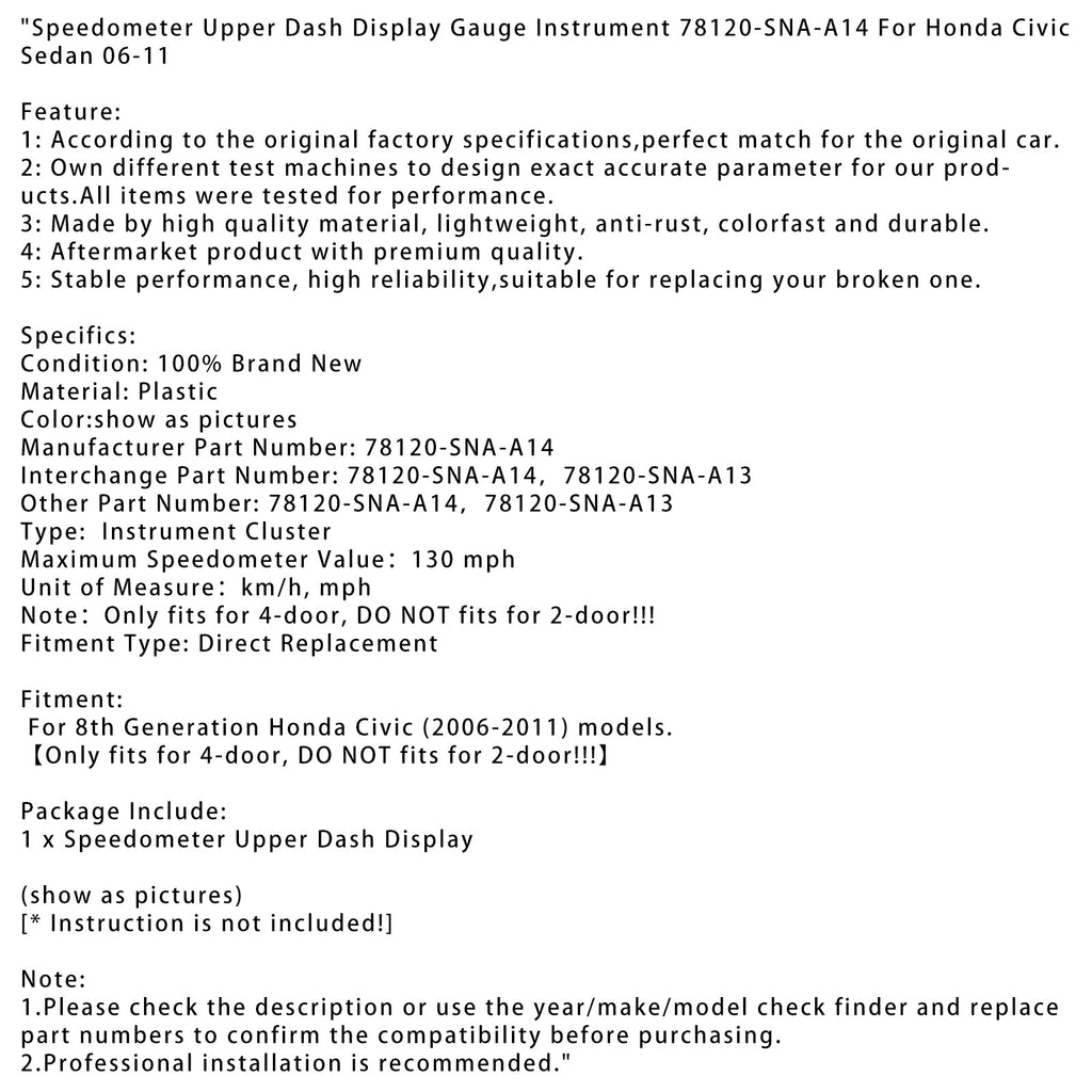 Prędkościomierz dla Honda Civic Sedan 06-11 górny wyświetlacz deski rozdzielczej 78120-SNA-A14