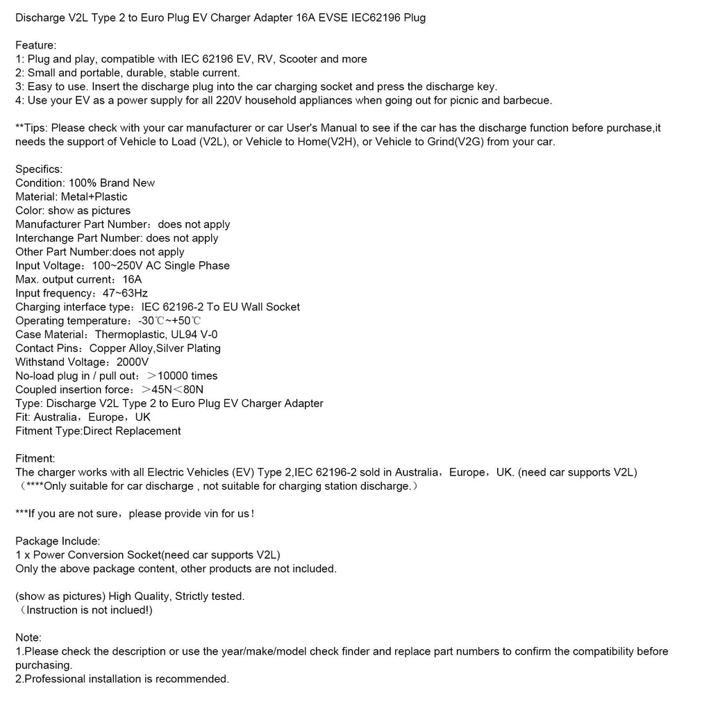 Typ: Adapter ładowarki EV V2L typu 2 do wtyczki UE