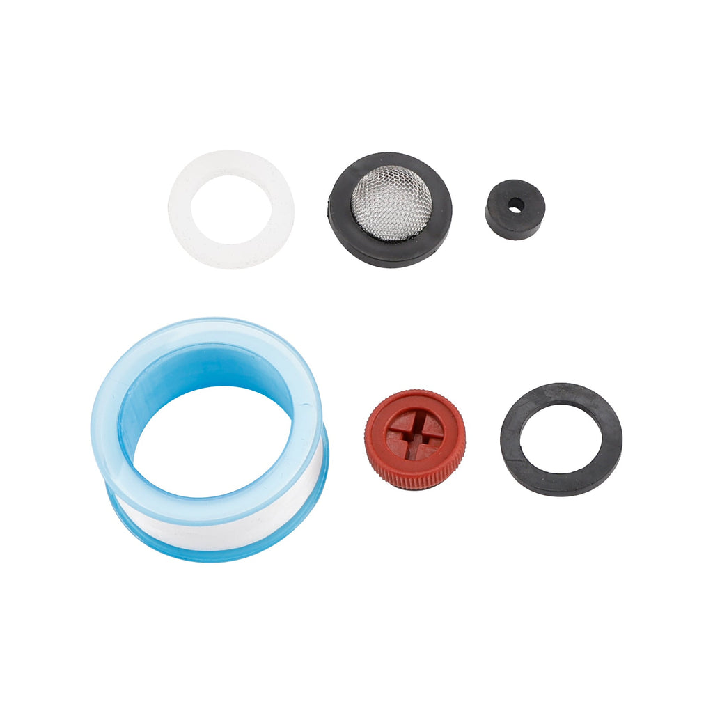 4. W zestawie znajdują się dwa dodatkowe wkłady dopływowe i rolka taśmy. Wkłady dopływowe pomagają filtrować część zanieczyszczeń z wody podczas użytkowania, a taśma zapobiega przeciekom podczas podłączania instalacji.