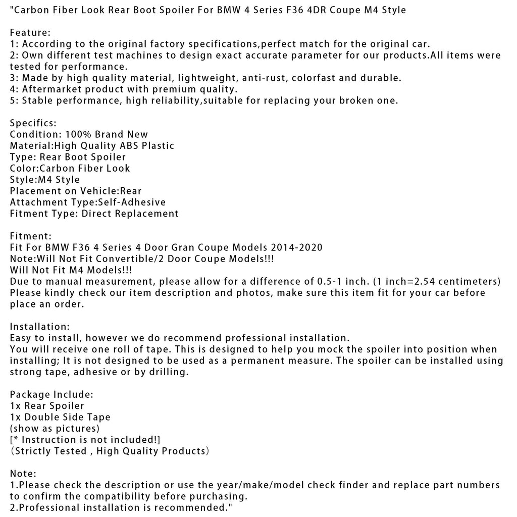 Pasuje do modeli BMW F36 serii 4 Gran Coupe 4-drzwiowych z lat 2014-2020