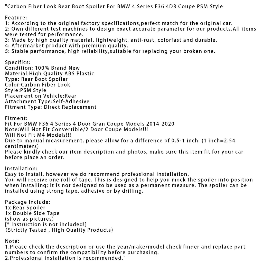 Spoiler tylny bagażnika z włókna węglowego do BMW serii 4 F36 Coupe 4DR, styl PSM