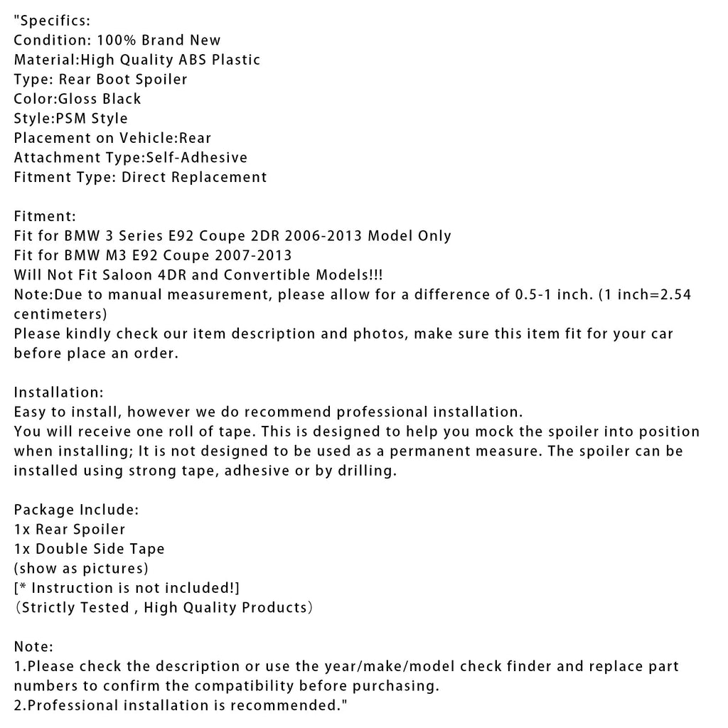 Czarny błyszczący tylny spoiler bagażnika do BMW serii 3 E92 Coupe 06-13 PSM Style