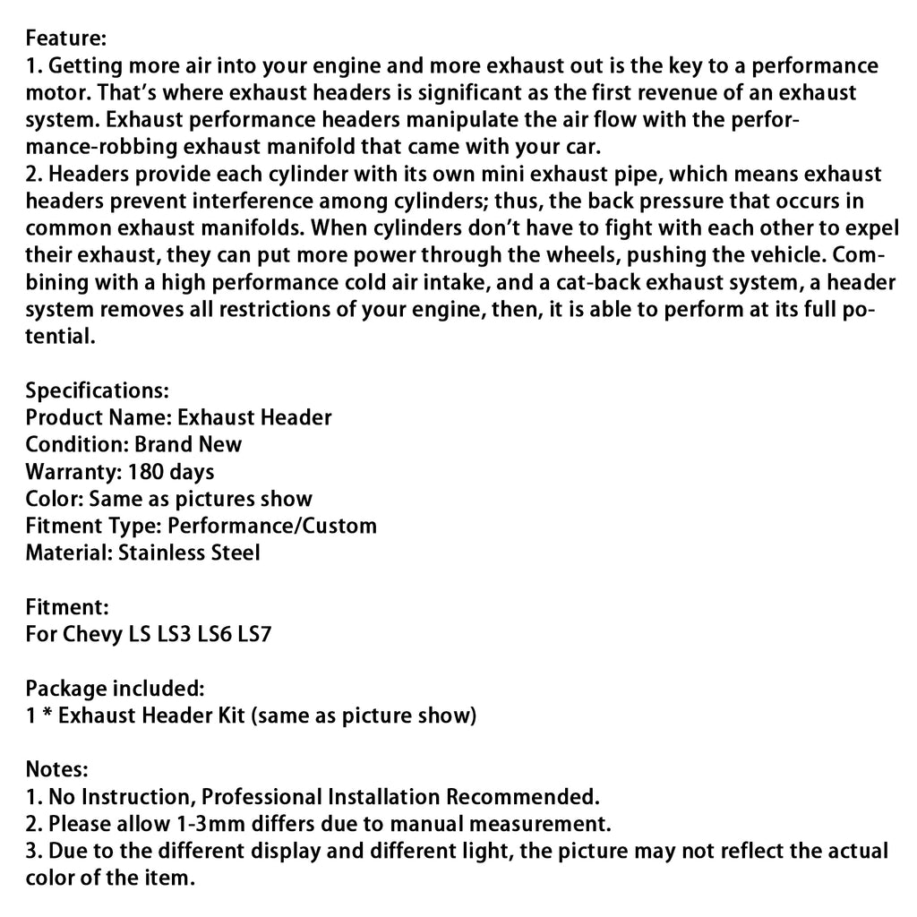 Wydajny kolekcjoner wydechowy ze stali nierdzewnej dla silnika Chevy LS, LS3, LS6, LS7