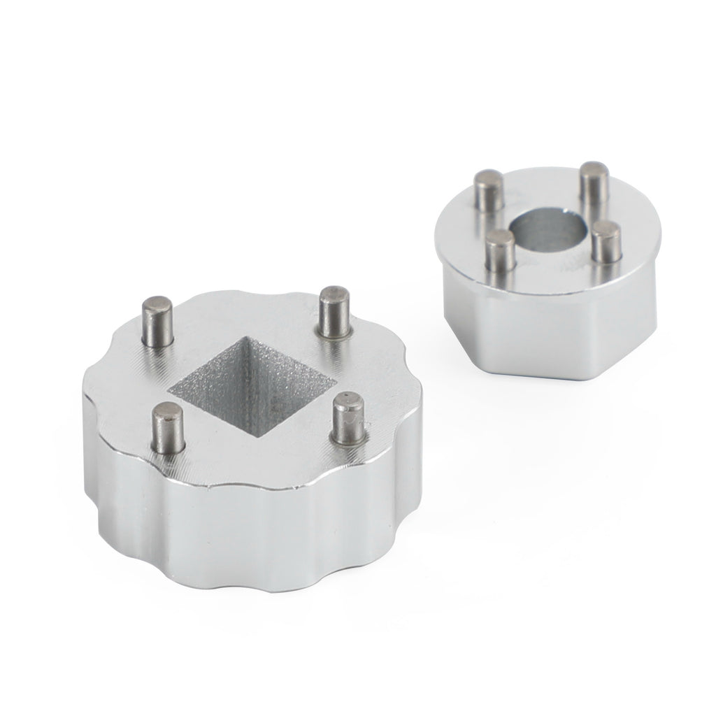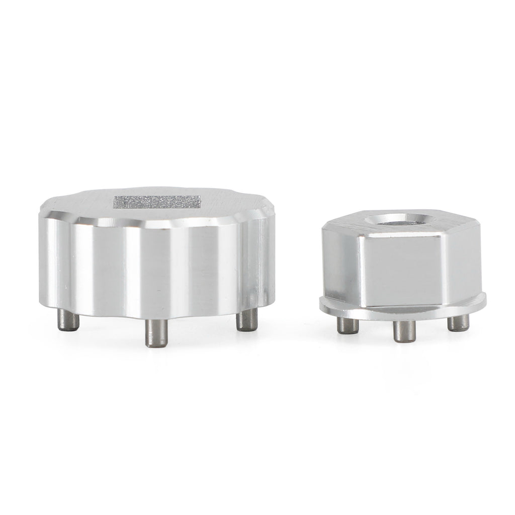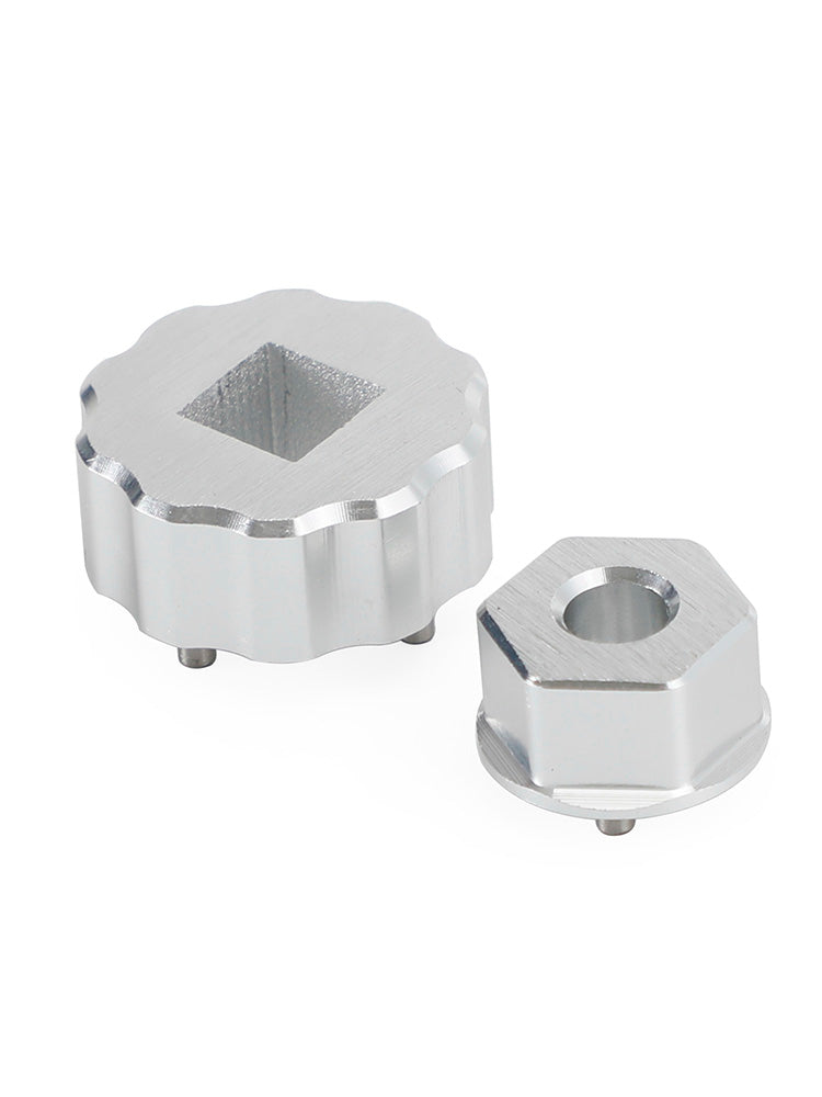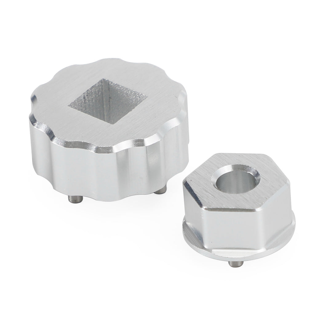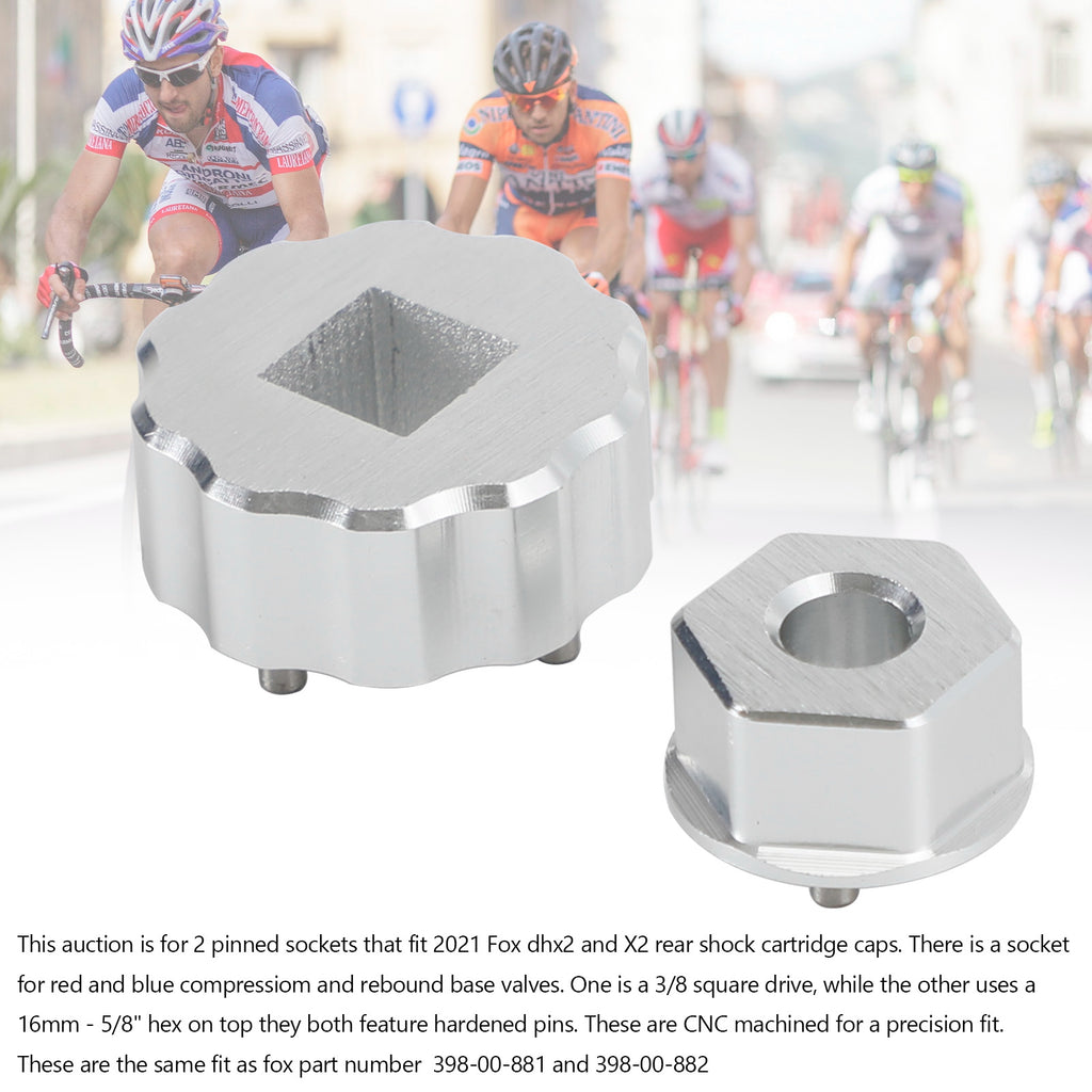 „Ta aukcja dotyczy 2-pinowych gniazd pasujących do 2021 Fox dhx2 i /8, podczas gdy drugie mają na górze sześciokąt 16 mm – 5/8””, oba mają hartowane piny. Są one obrabiane maszynowo. CNC dla precyzyjnego dopasowania. Są identyczne z częściami Fox 398-00-881 i 398-00-882.