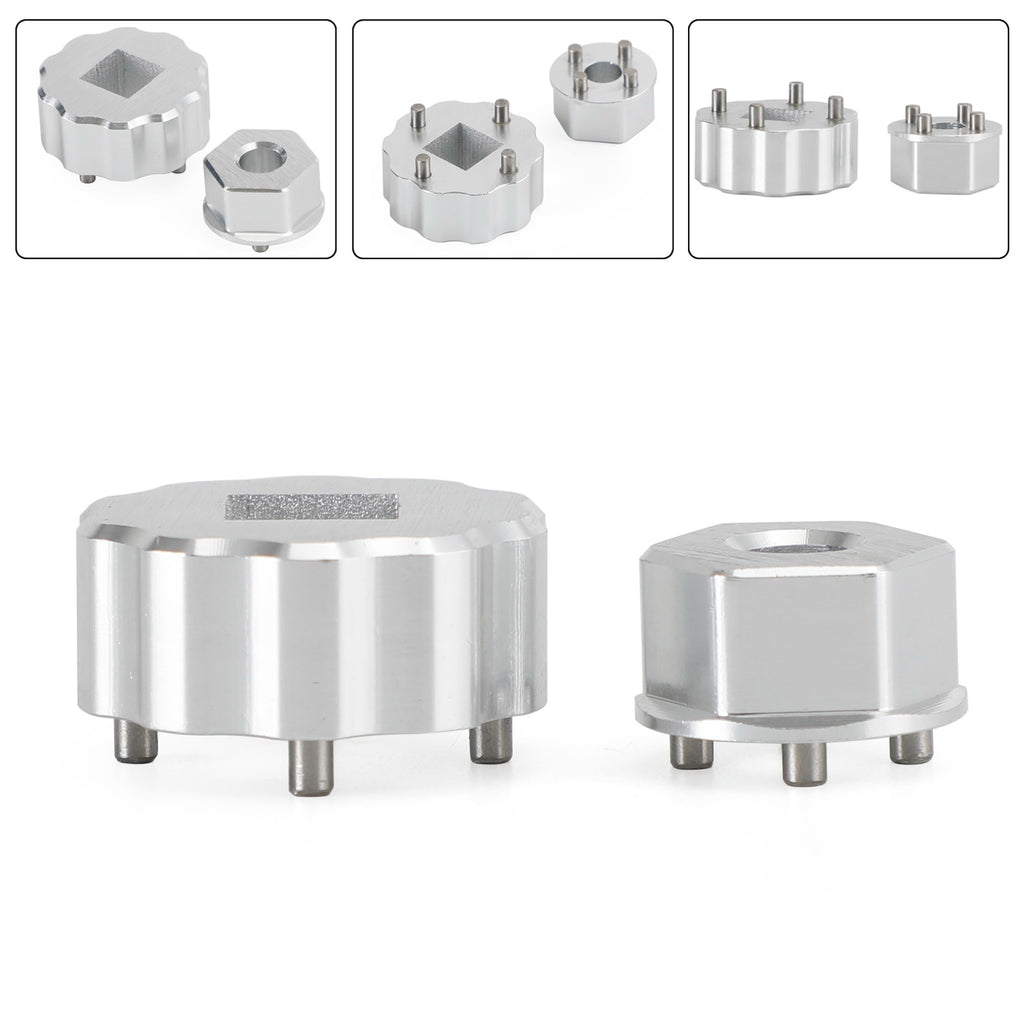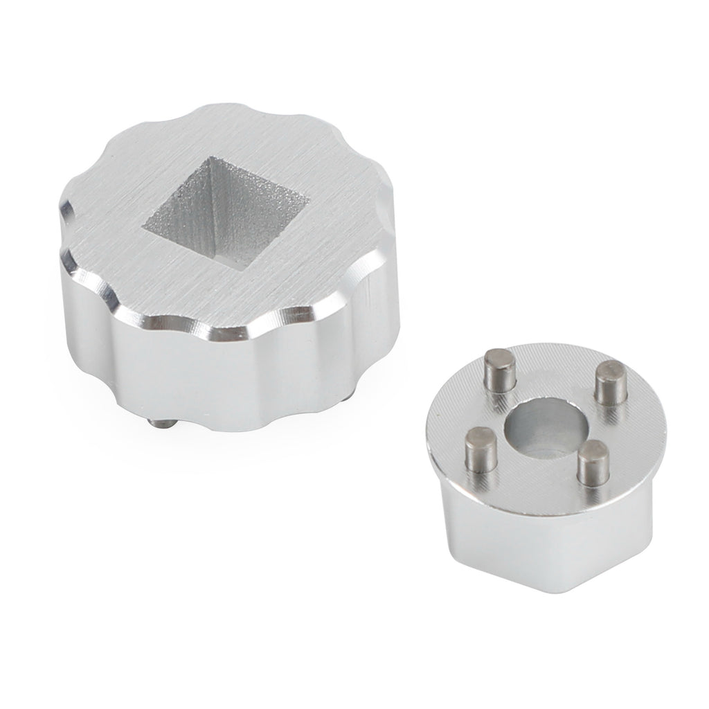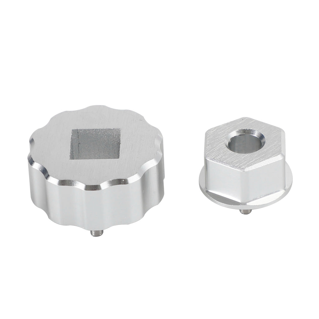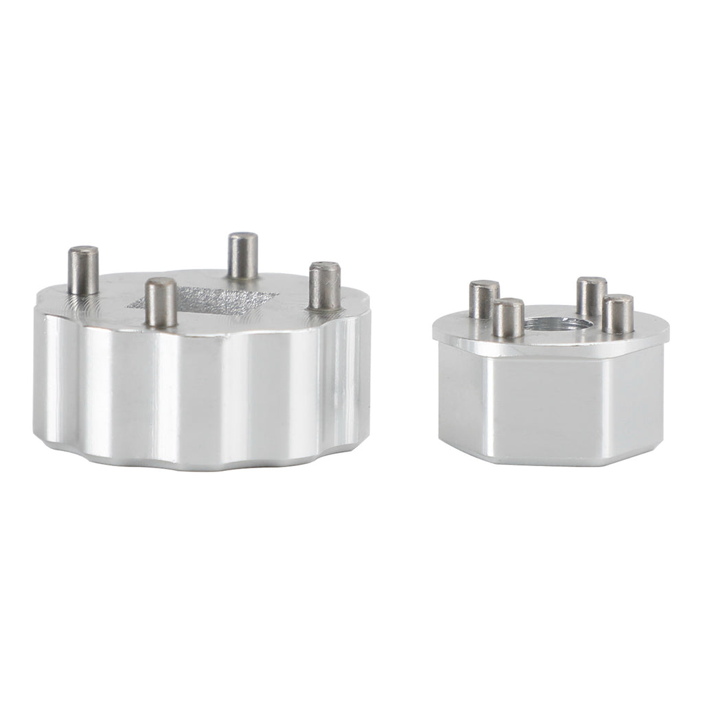 „Ta aukcja dotyczy 2-pinowych gniazd pasujących do 2021 Fox dhx2 i /8, podczas gdy drugie mają na górze sześciokąt 16 mm – 5/8””, oba mają hartowane piny. Są one obrabiane maszynowo. CNC dla precyzyjnego dopasowania. Są identyczne z częściami Fox 398-00-881 i 398-00-882.