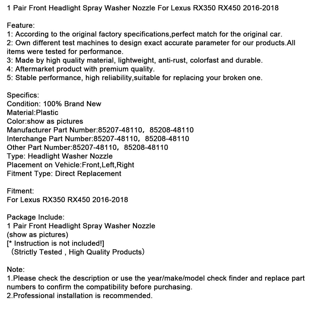 1 paire de buses de lave-phares avant compatibles avec Lexus RX350 RX450 2016-2018