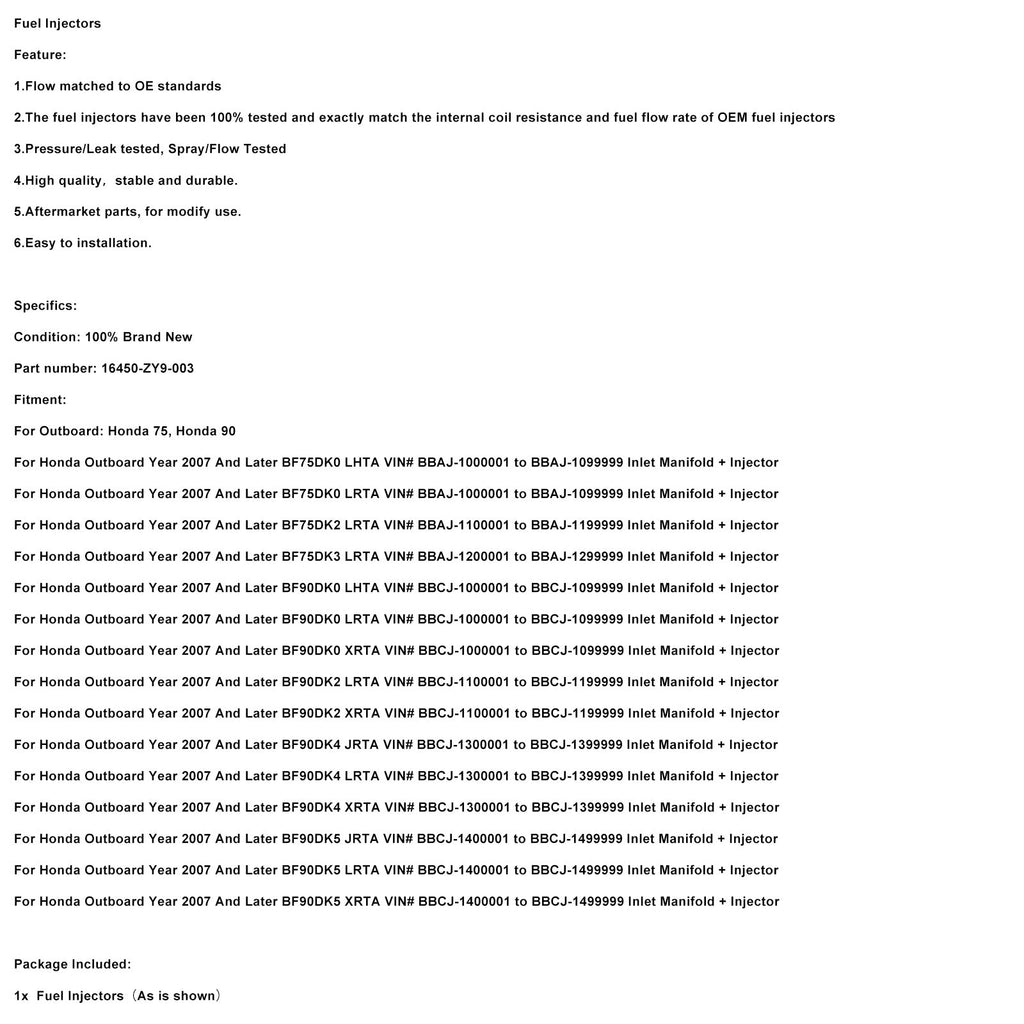 Injecteurs de carburant compatibles avec Honda BF90D BF75 16450-ZY9-003