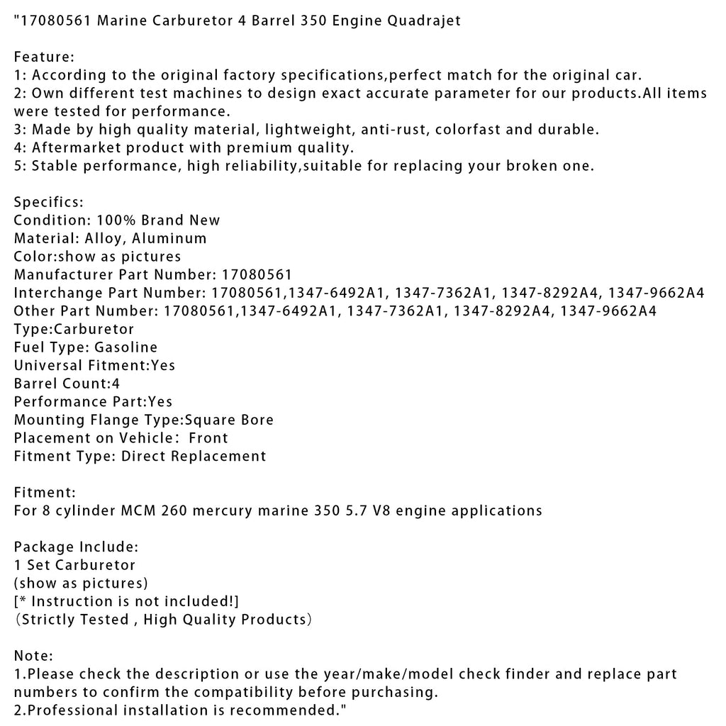 17080561 Carburateur marin 4 corps pour moteur 350 Quadrajet
