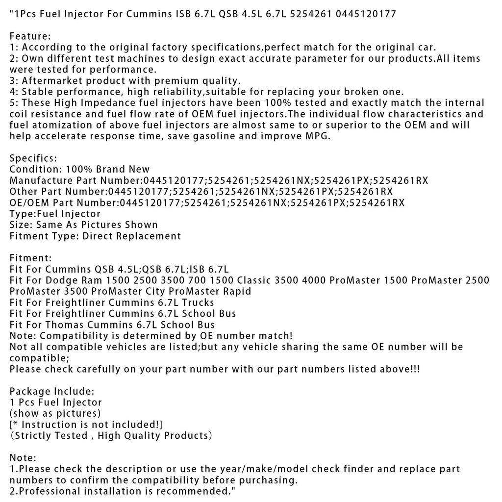 1 injecteur de carburant pour Cummins ISB 6.7L QSB 4.5L 6.7L 5254261 0445120177