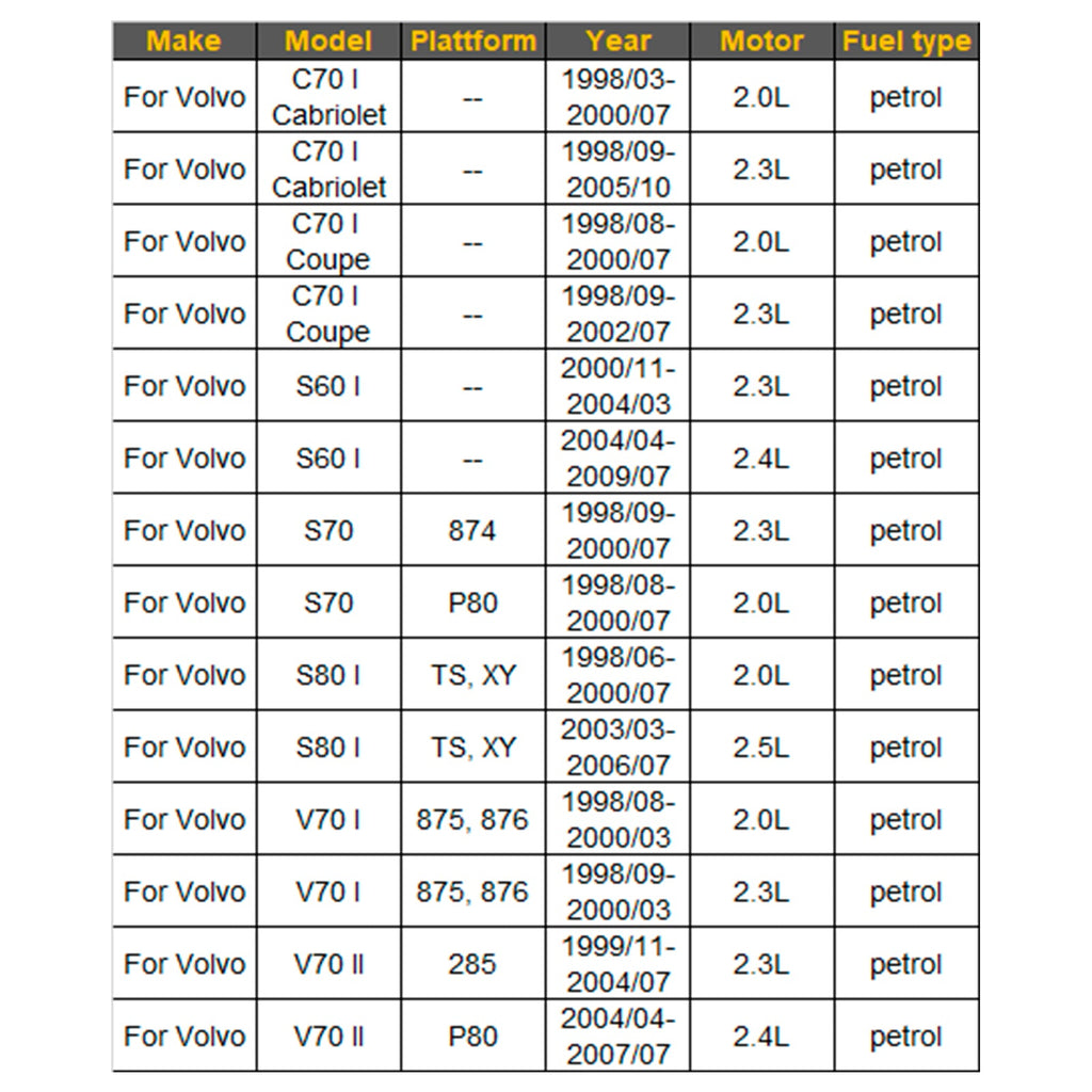 Compatible avec Volvo C70 I Cabriolet 1998/09-2005/10 2.3L Essence