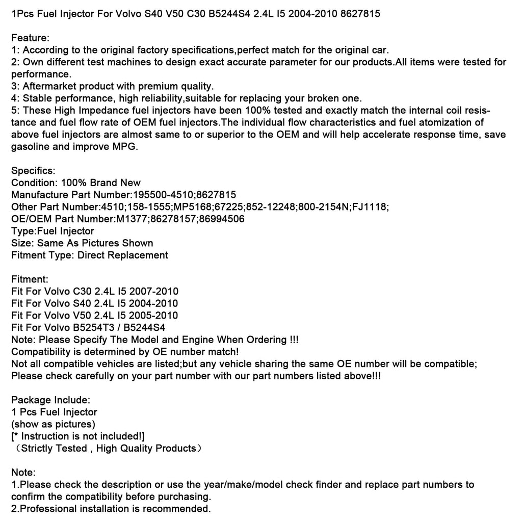 1 injecteur de carburant pour Volvo S40 V50 C30 B5244S4 2.4L I5 2004-2010 8627815