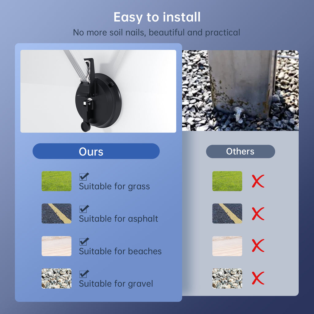 N'importe quel lieu : plus limité aux endroits où les routes sont en mauvais état, ni limité aux intempéries, les ventouses peuvent parfaitement faire face à toutes les situations, ouvrez le hangar d'ombrage où vous voulez aller.