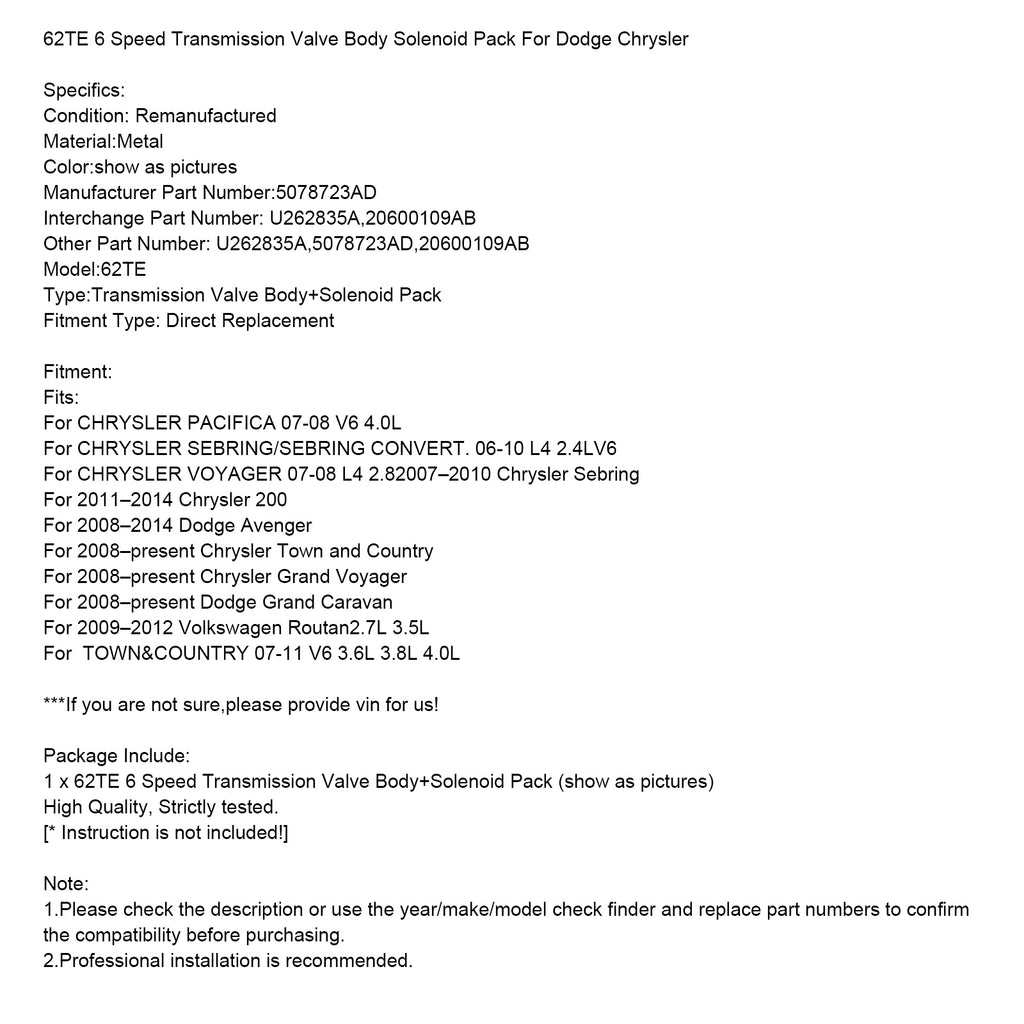 1 corps de soupape de transmission 6 vitesses 62TE + pack solénoïde (montrer comme images)