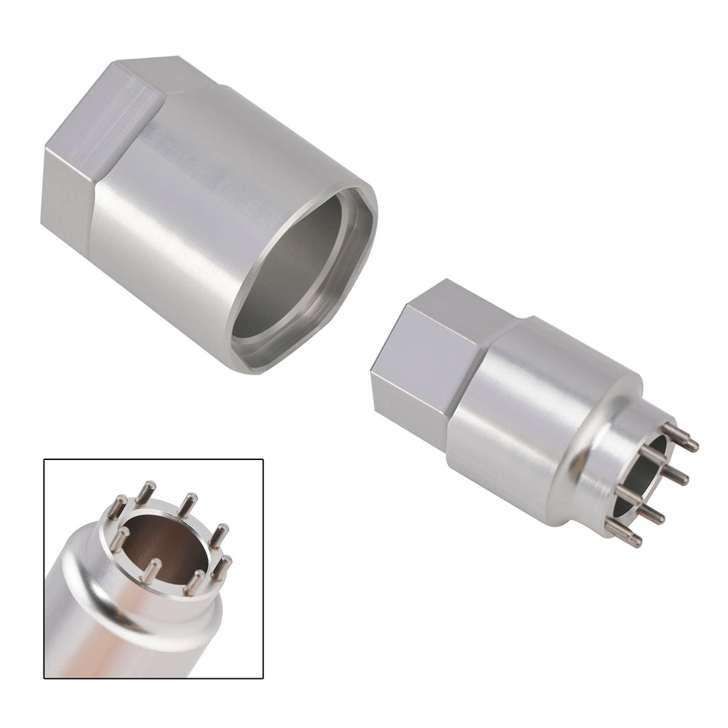 Le premier est destiné à une prise à 8 broches. Il est doté de broches renforcées et usiné CNC pour un ajustement précis. Il est utilisé pour la partie intérieure de la tête d'étanchéité.