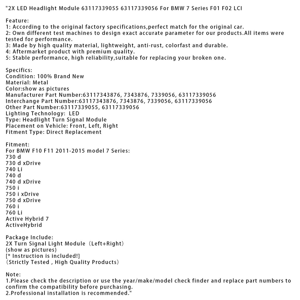 Lot de 2 modules de phares à LED 63117339055 et 63117339056 pour BMW Série 7 F01 F02 LCI