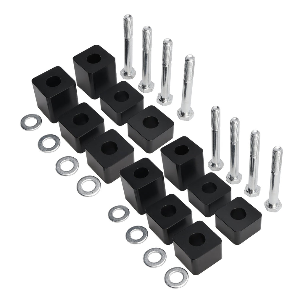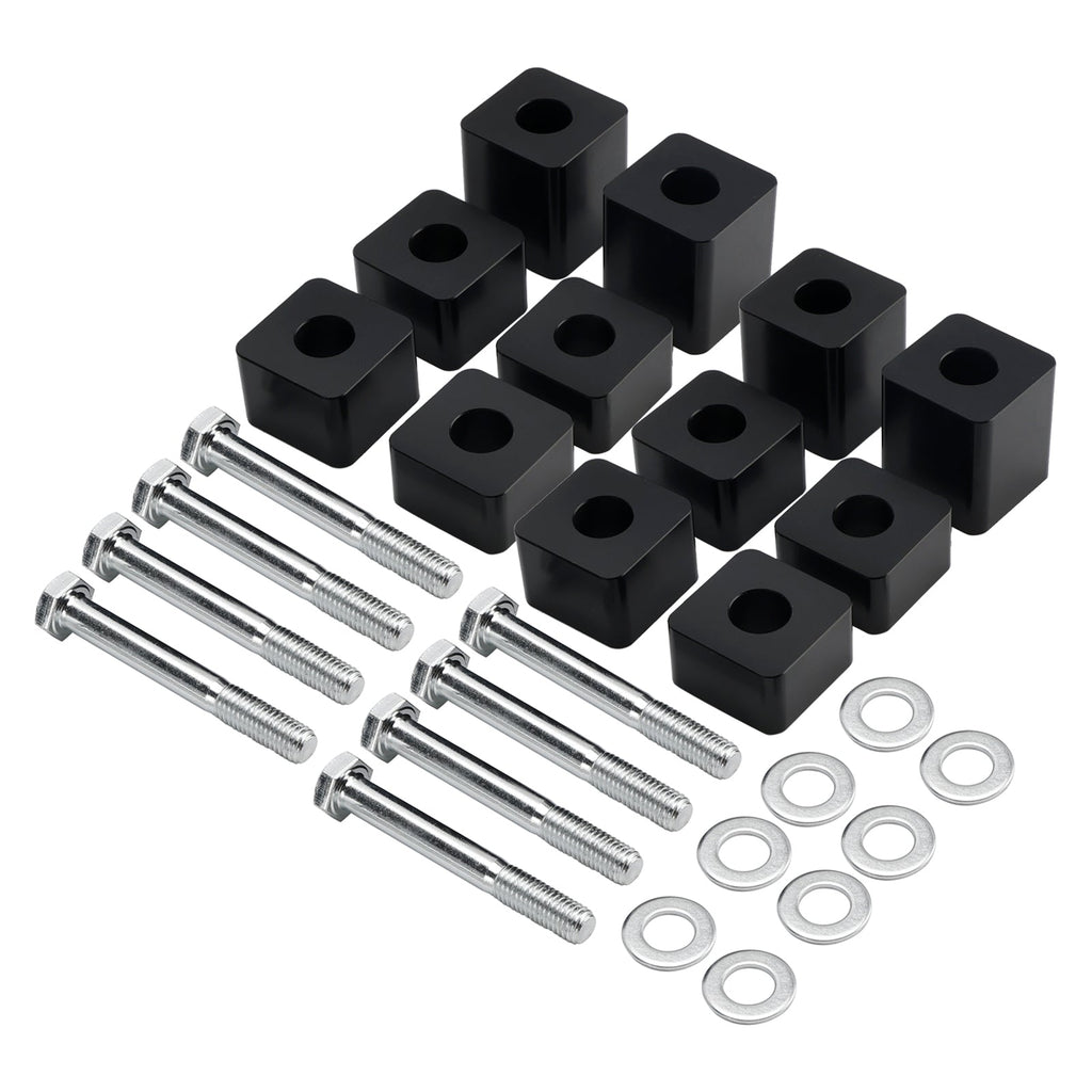 Hauteur réglable : Les entretoises du siège conducteur ou passager avant fournissent deux blocs de 4/5"", 1"" et 1,6"", augmentant la hauteur de 4/5"" à 2,4"" par combinaison superposée.