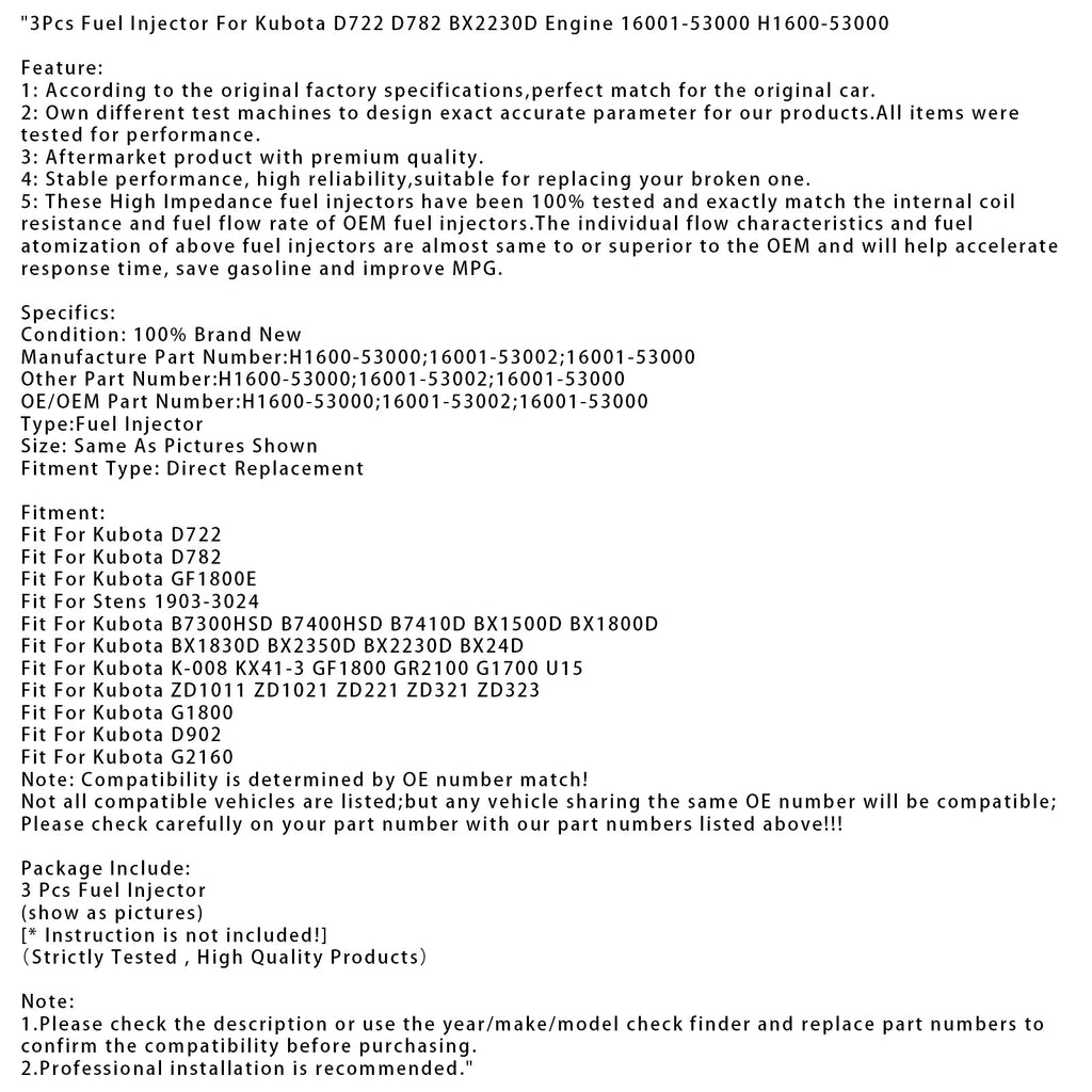 3 injecteurs de carburant pour moteur Kubota D722 D782 BX2230D 16001-53000 H1600-53000