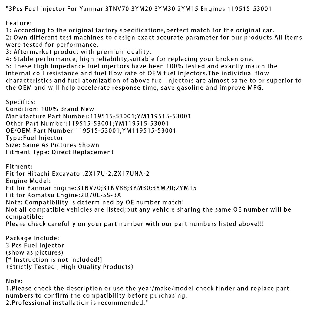 3 injecteurs de carburant pour moteurs Yanmar 3TNV70, 3YM20, 3YM30 et 2YM15 (référence 119515-53001)