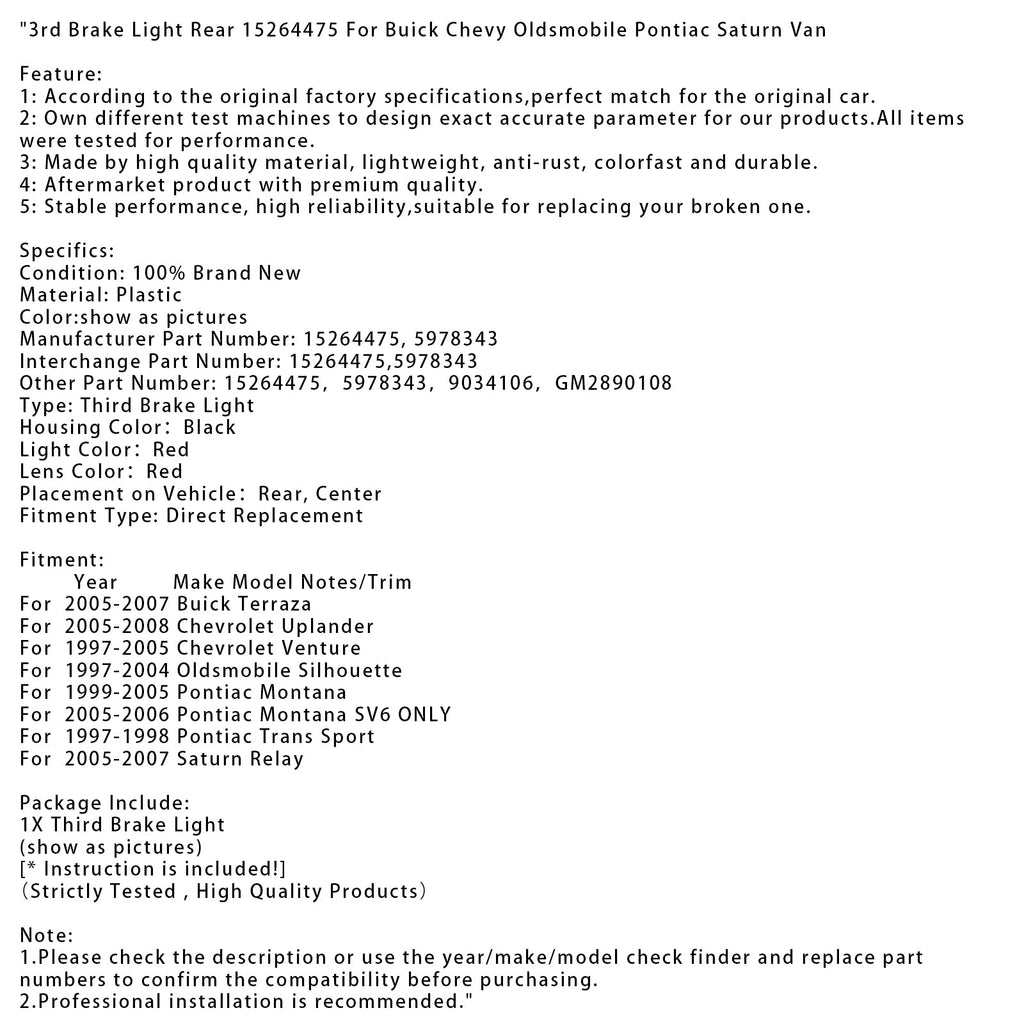 Troisième feu stop arrière 15264475 pour fourgonnette Buick, Chevy, Oldsmobile, Pontiac, Saturn