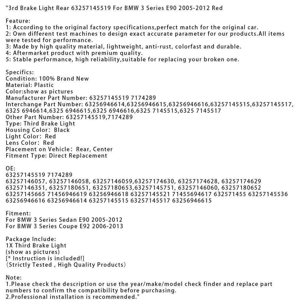 Troisième feu stop arrière 63257145519 pour BMW Série 3 E90 2005-2012 Rouge