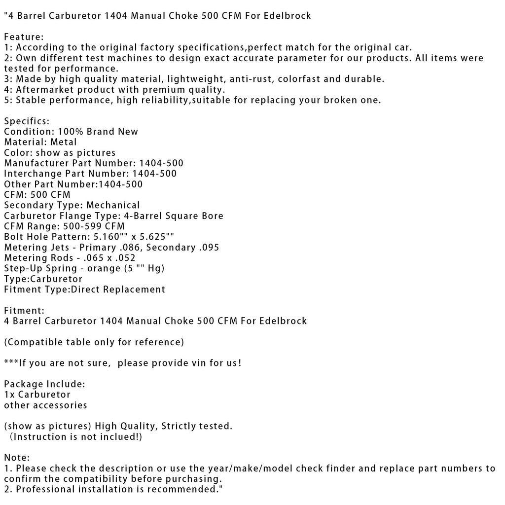 Carburateur 4 barils 1404 starter manuel 500 CFM adapté pour Edelbrock