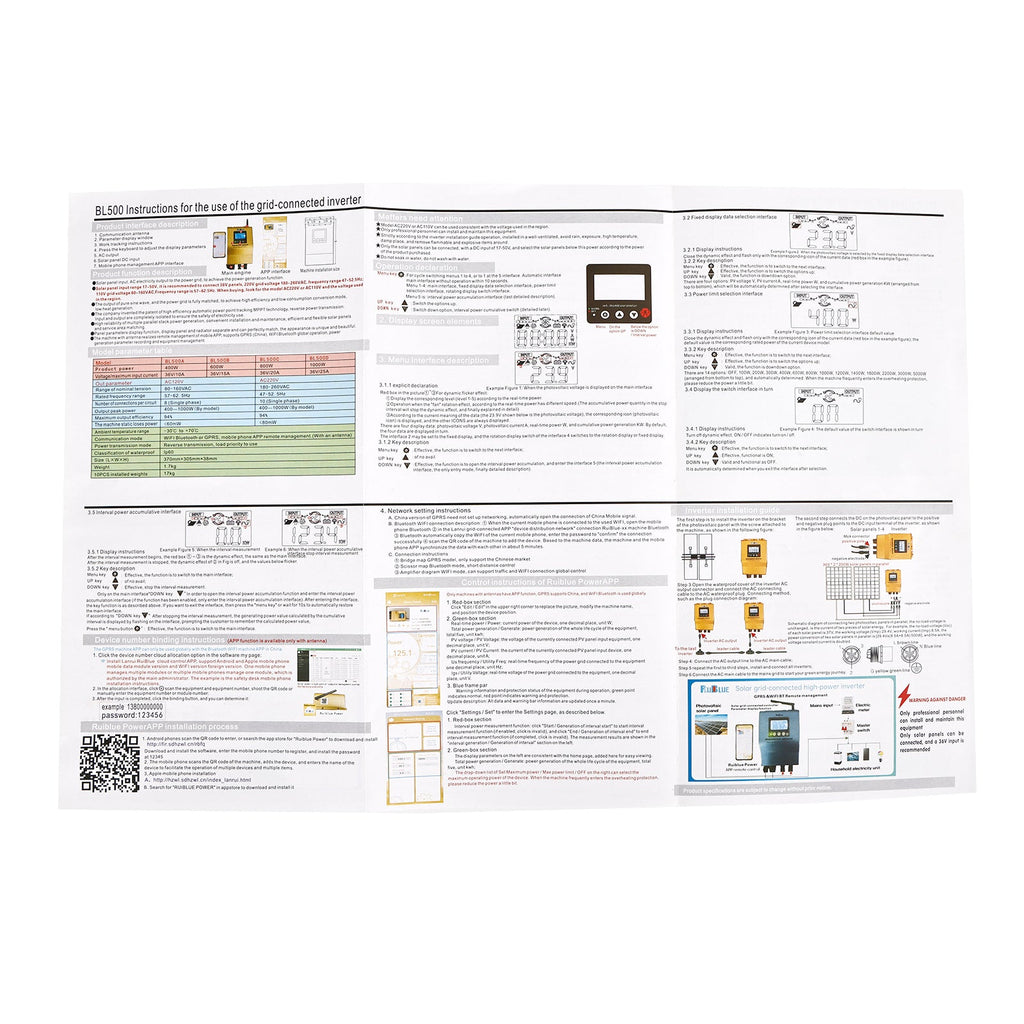 ★ Ne peut connecter que les panneaux solaires, entrée DC 17-50V, selon l'achat de la puissance du produit pour choisir moins que la puissance du panneau solaire.