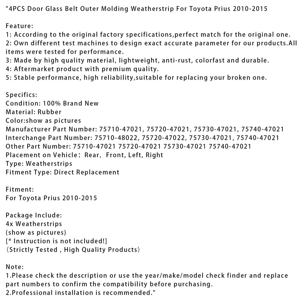 Bande d'étanchéité extérieure pour ceinture de porte en verre, 4 pièces, pour Toyota Prius 2010-2015