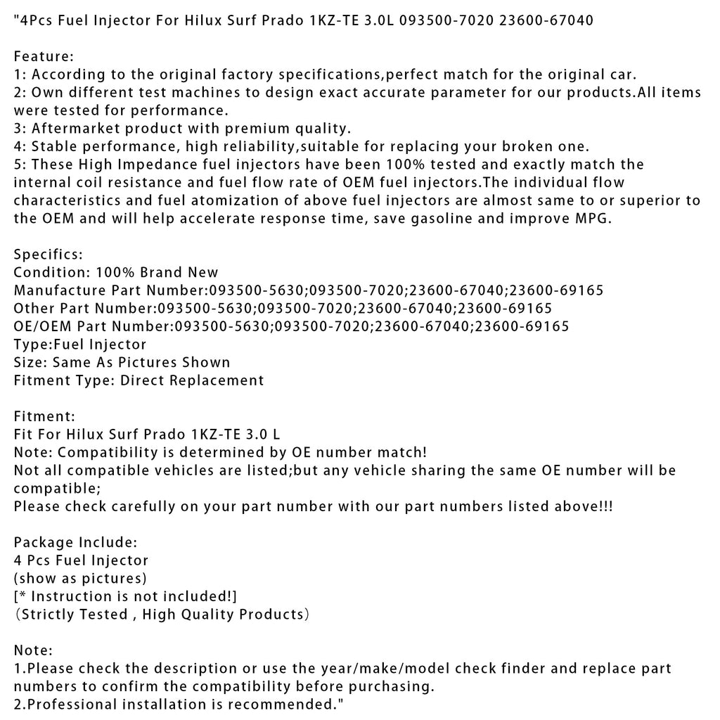 4 injecteurs de carburant pour Hilux Surf Prado 1KZ-TE 3.0L 093500-7020 23600-67040