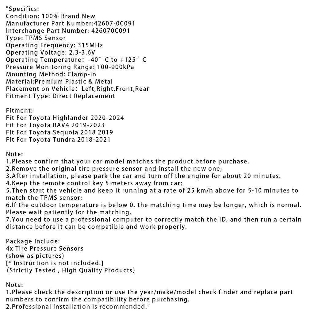 Capteur de pression des pneus TPMS 4X pour Toyota RAV4 Highlander Tundra 426070C091
