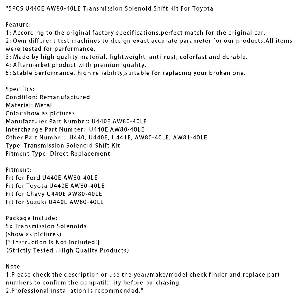 Compatible avec Toyota U440E AW80-40LE