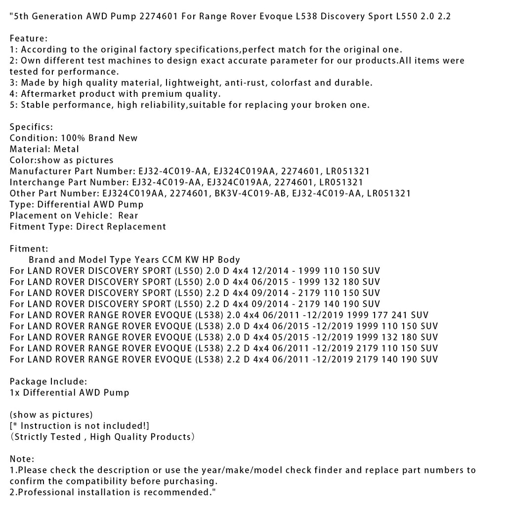Pompe de transmission intégrale de 5e génération 2274601 pour Range Rover Evoque L538 Discovery Sport L550 2.0 2.2