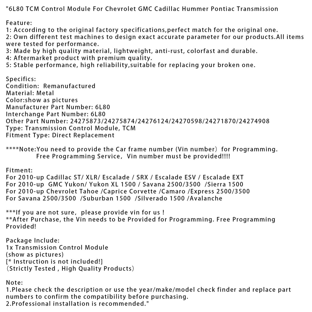 Module de commande TCM 6L80 pour transmission Chevrolet GMC Cadillac Hummer Pontiac