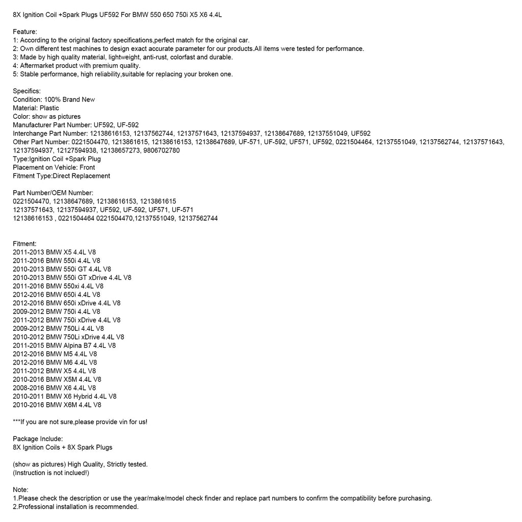 Lot de 8 bobines d'allumage et bougies d'allumage UF592 pour BMW 550 650 750i X5 X6 4.4L