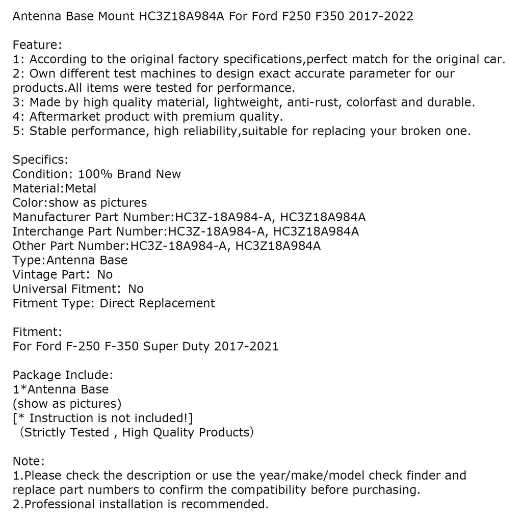 Support de base d'antenne HC3Z18A984A compatible avec Ford F250 F350 2017-2022