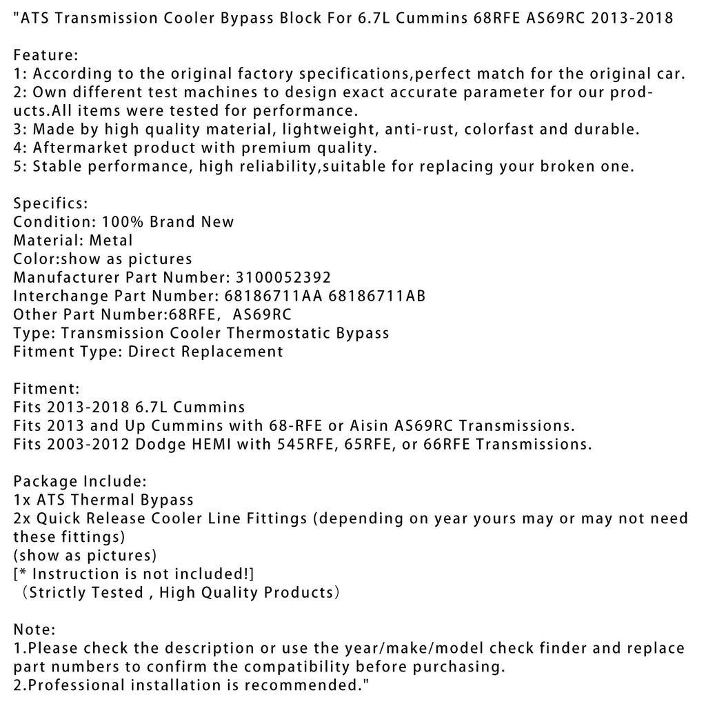 Bloc de dérivation du refroidisseur de transmission ATS pour moteur Cummins 6,7 L 68RFE AS69RC 2013-2018