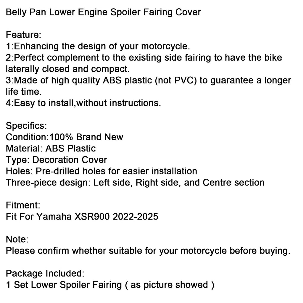 Carénage inférieur de moteur avec spoiler, compatible avec Yamaha XSR900 2022-2025