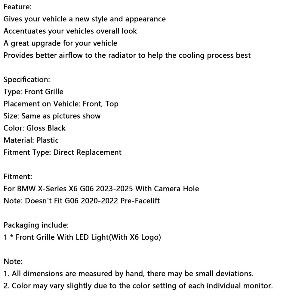 Grille de pare-chocs avant noire pour BMW X6 G06 M60i 2023-2025 avec trou pour caméra