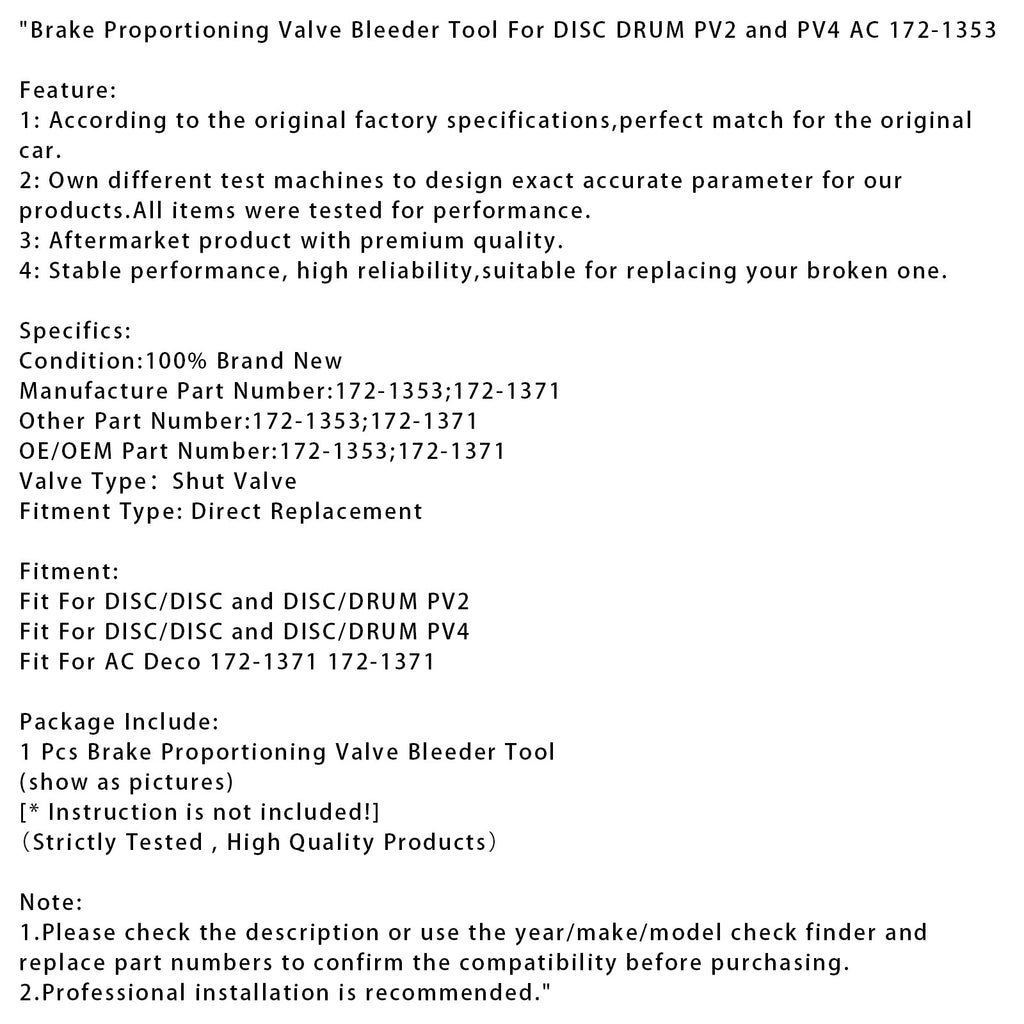 Outil de purge de valve de répartition de freinage pour freins à disque et tambour PV2 et PV4 AC 172-1353