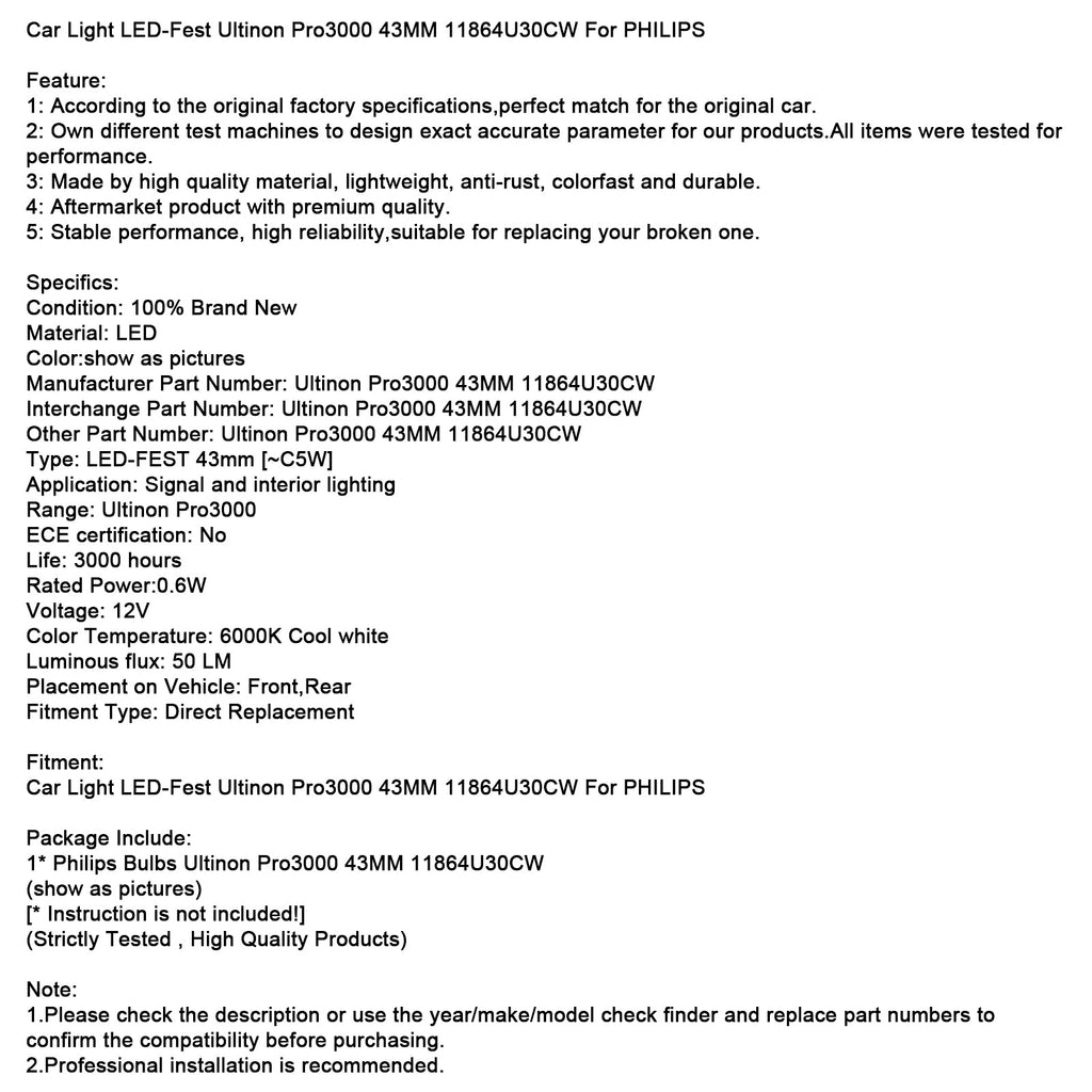 Phare LED pour voiture Ultinon Pro3000 43 mm 11864U30CW pour Philips