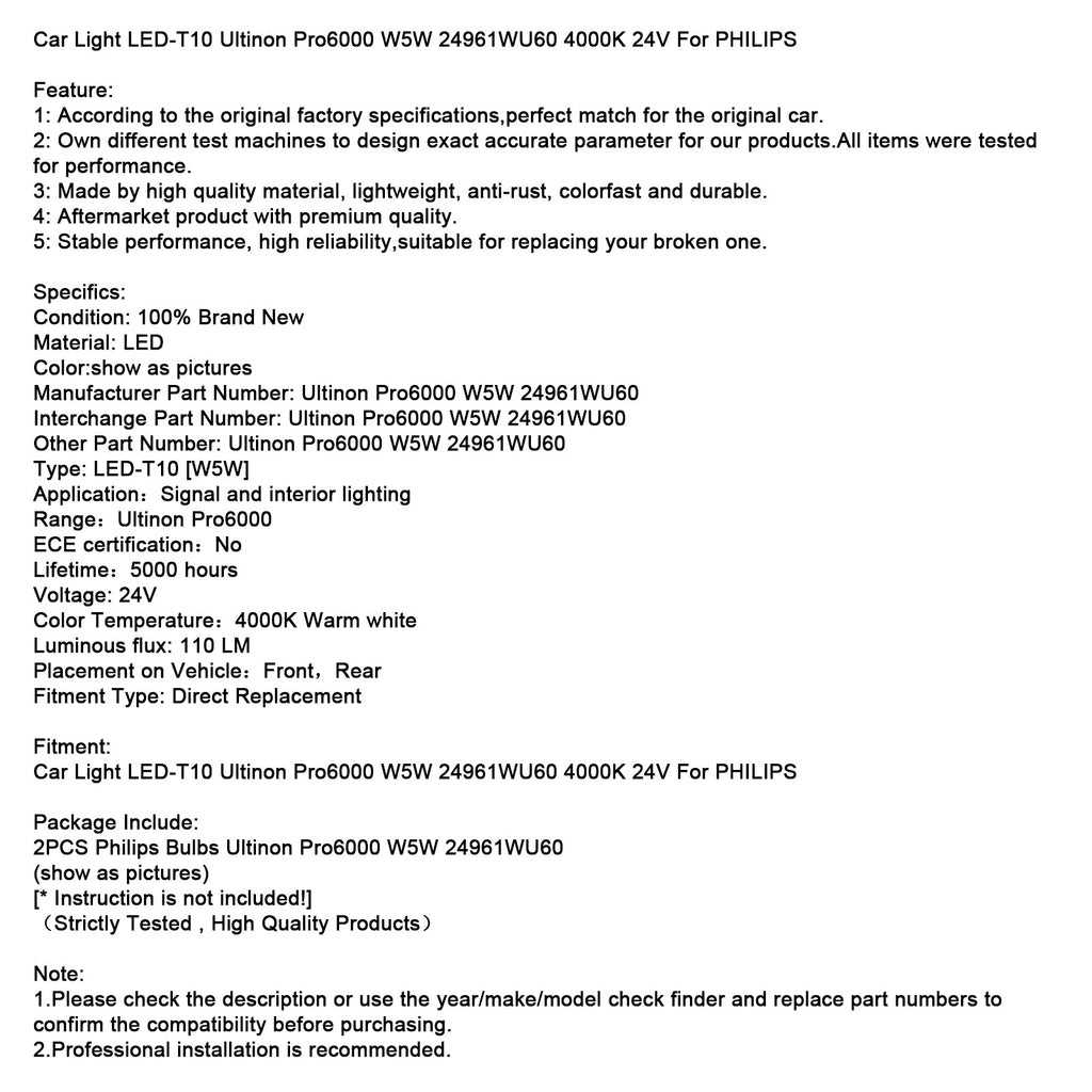 Phare LED T10 Ultinon Pro6000 W5W 24961WU60 4000K 24V pour voiture Philips