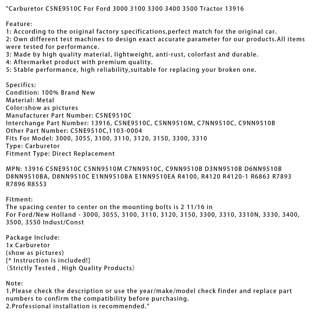 Carburateur C5NE9510C pour tracteur Ford 3000 3100 3300 3400 3500 13916
