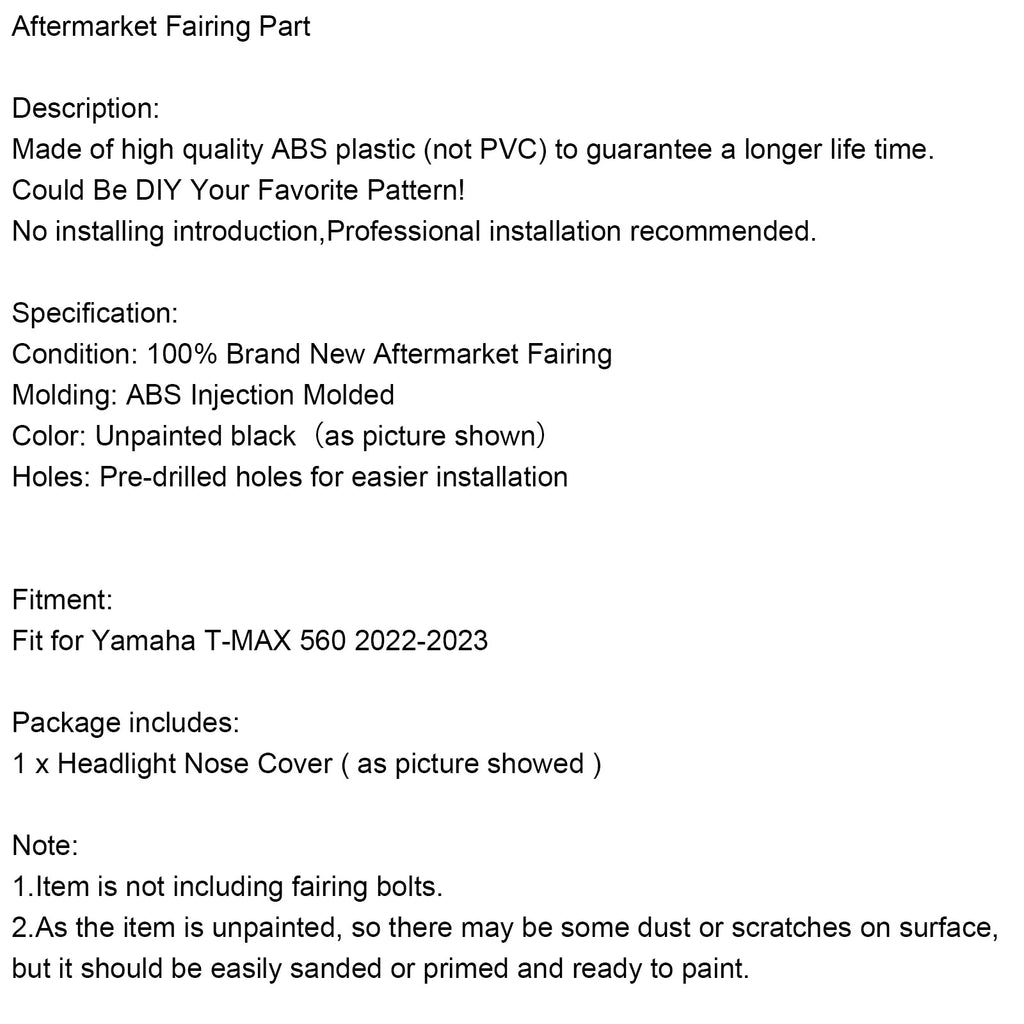 Couvercle de nez de phare avant non peint pour Yamaha T-MAX 560 2022-2024