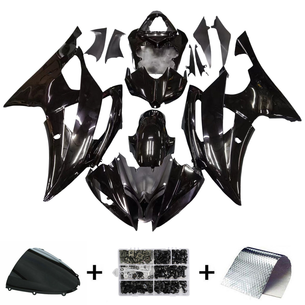 Kit de carrosserie en plastique injecté pour carénage compatible avec YAMAHA YZF-R6 2008-2016 Noir Brillant