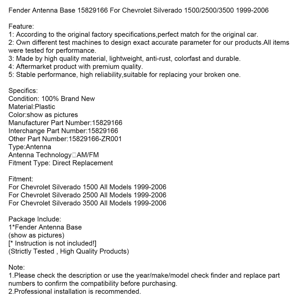 Embase d'antenne d'aile 15829166 pour Chevrolet Silverado 1500/2500/3500 1999-2006