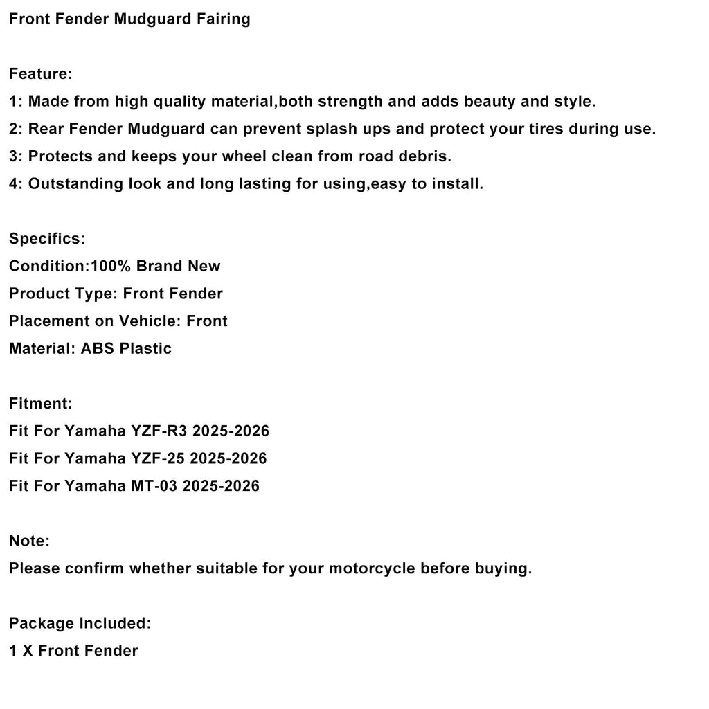 Garde-boue avant compatible avec Yamaha YZF-R3 YZF R25 MT-03 2025-2026
