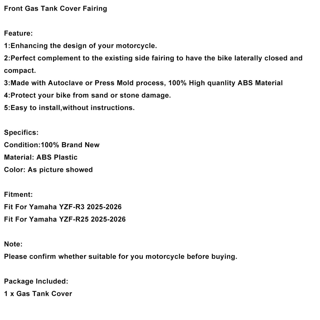 Carénage de réservoir d'essence avant compatible avec Yamaha YZF-R3 R25 2025-2026